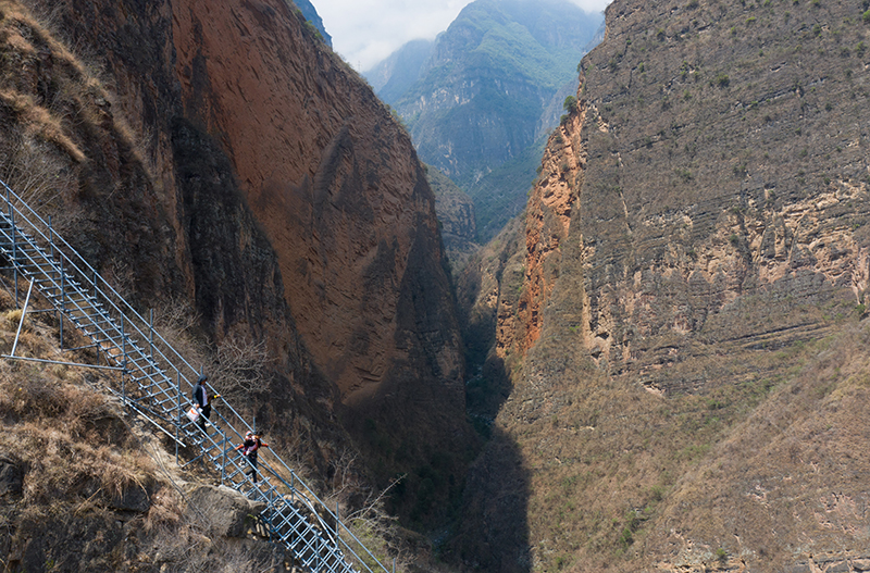 2020年5月13日,四川省凉山彝族自治州昭觉县支尔莫乡“悬崖村”——阿土列尔村高山区的贫困户沿着钢梯下山,准备搬进昭觉县城易地扶贫搬迁安置点的新家(无人机照片)。新华社记者 江宏景 摄